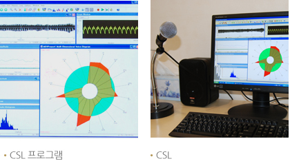 현재 임상에서 가장 보편적으로 사용되고 있는 음향분석 기기는 Computerized Speech Laboratory (CSL) 과 Dr. Speech Science 로서 저희 아름다운목소리 이비인후과에서는 두 가지의 검사기기를 모두 갖추어 놓고 음성을 정확히 분석해 내고 있습니다. 음성질환자의 음성 특징에 관한 분석 뿐 아니라, 음성직업인의 음성관리에도 효율적인 자료를 제공하게 되며, 수술이나 음성치료 전과 후의 결과를 분석하고 문제점을 발견하는 데 유용한 검사로 사용됩니다.
